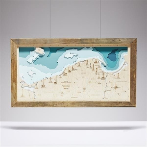 Drewniana mapa Zatoka Gdańska w ramie - 41,5 cm x 30 cm